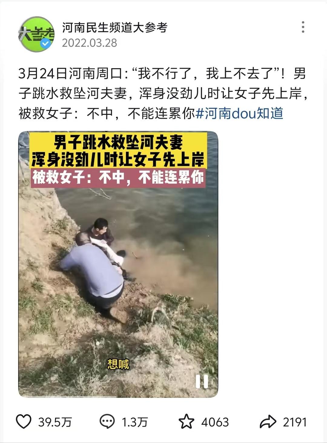 22年河南小伙跳河救人,耗尽体力留下遗言,被救女子:不能连累你