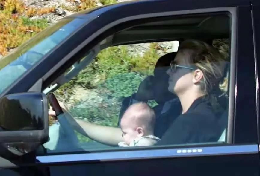 哪怕一同外出,也是布兰妮一手抱孩子一手开车。
