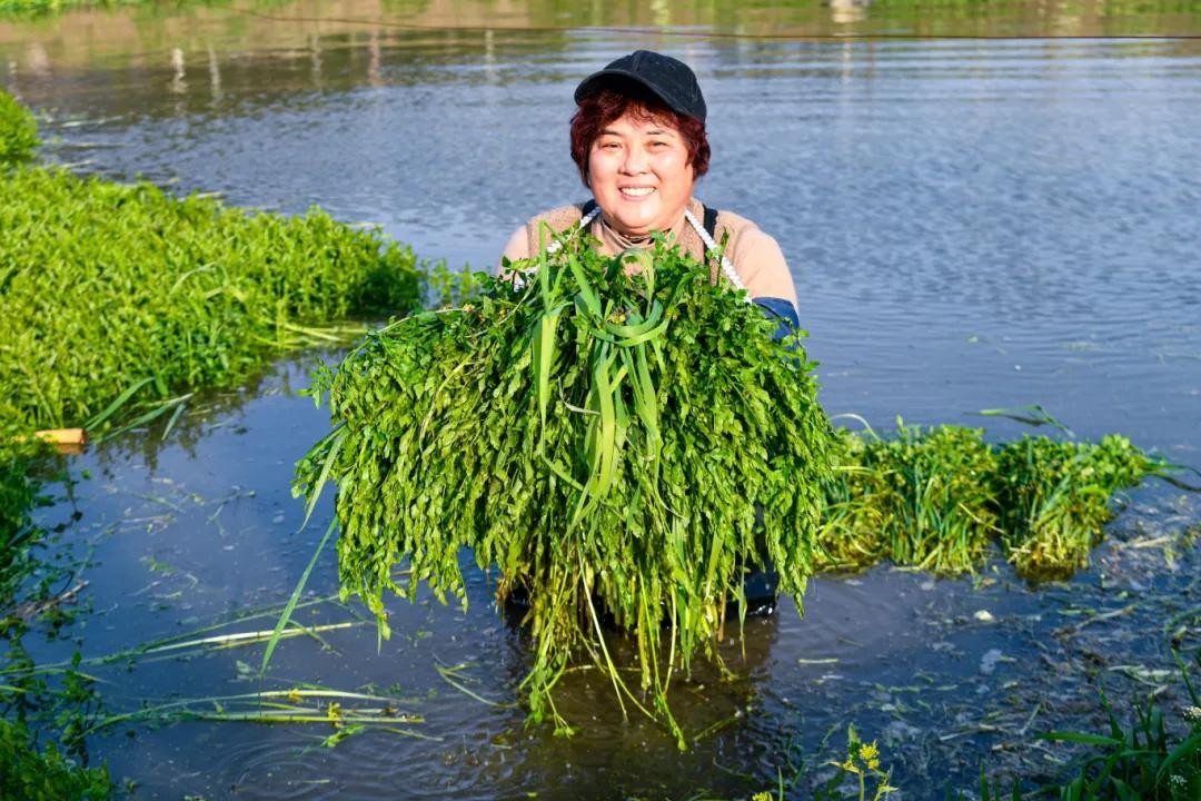 金坛朱林镇农民宋锁龙从事水芹采摘