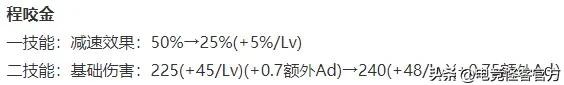程咬金一技能减速效果前期对半砍,作为补偿,二技能的基础伤害全方位小幅提升。