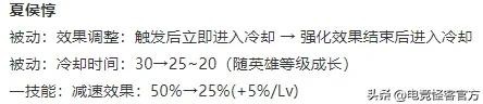 虽然同步减少了5~10秒的被动CD,但前期来说夏侯惇的被动冷却时间依然是更长了。