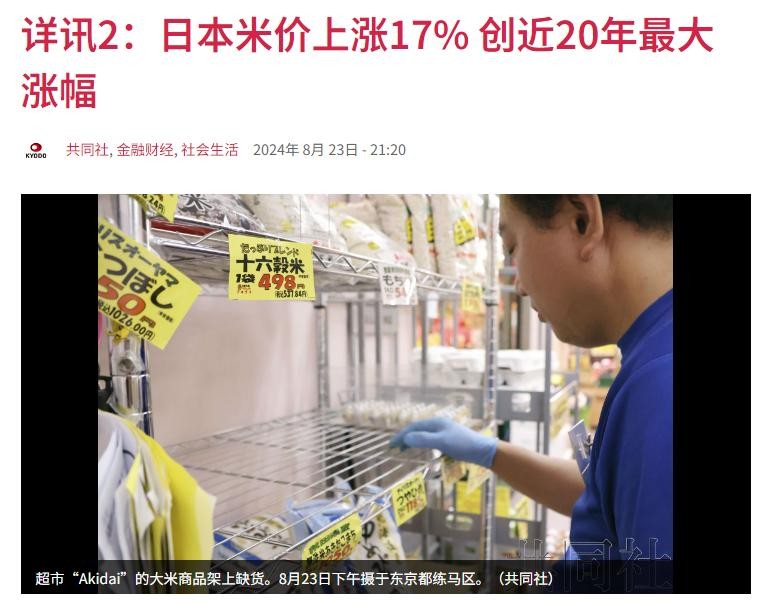 光明网《供需紧张 日本米价创近20年最大涨幅》2024-08-27