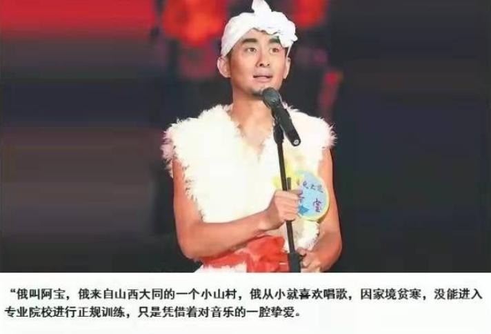 2004年,35岁的阿宝报名参加了央视举办的“西部民歌大赛”,并获得了铜奖。这场比赛让他看到了曙光,也给他在《星光大道》上参赛打下了基础。《星光大道》这节目给普通人唱歌的提供了个亮相的机会。