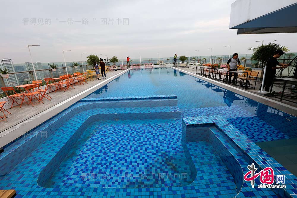 古老的河内在新经济政策的推动下发生了日新月异的变化,高楼拔地而起,楼顶的游泳池映出蓝天白云,水光天色,成为越南人民新生活的一面镜子。” 梅生 摄影