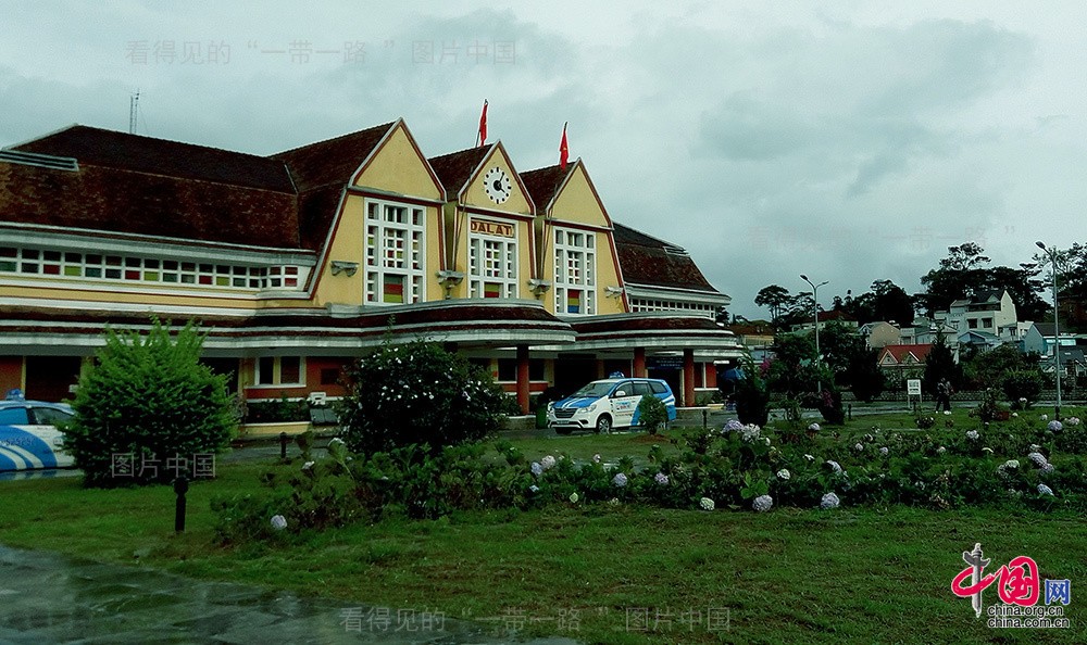 大叻火车站在1932年由法国建筑师Moncet和Reveron设计,于1938年开业。在越南战争战争后期被废弃,直到20世纪90年代才重新开始使用。这座火车站是典型的法式建筑,被誉为越南最美的火车站。火车站主色调是抢眼的橘红色,三个尖尖的屋顶和彩色玻璃彰显着古老的异国风情。远远望去,一种浓浓的法式风情扑面而来。如果不是顶上的越南国旗,想必你会以为这里会是在法国。黄永锦 摄