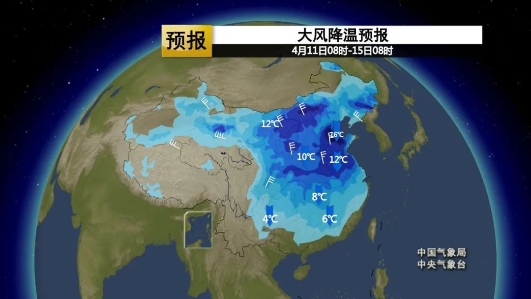 受较强冷空气影响,11日至14日,我国中东部大部地区将自西向东先后出现大范围降温及降水过程。大部分地区气温将下降6~10℃,内蒙古中部、华北、黄淮、东北地区东部、江淮北部、江汉西部等地部分地区降温幅度可达12~16℃,局地16℃以上,白天最高气温下降明显。