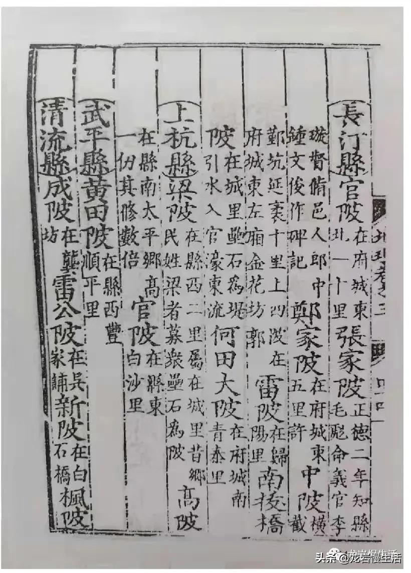嘉靖《汀州府志·卷三·陂圳》记载“高陂……高一仞,其修数倍”。