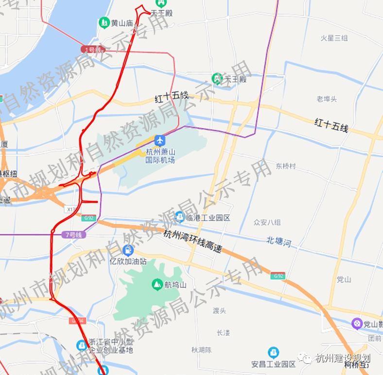 杭州市萧山区、钱塘区104国道杭州河庄至衙前段(萧山区、钱塘区段)路径选址公示图