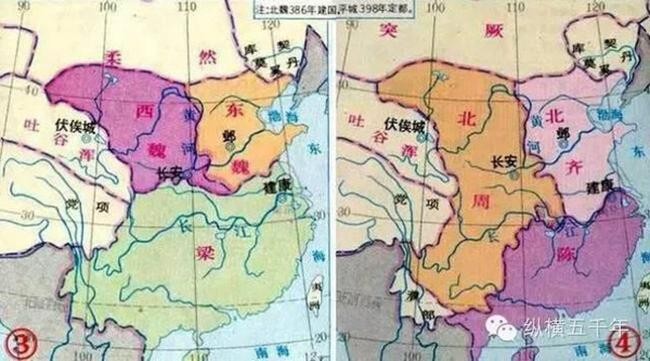侯景之乱前后南北朝形势对比图