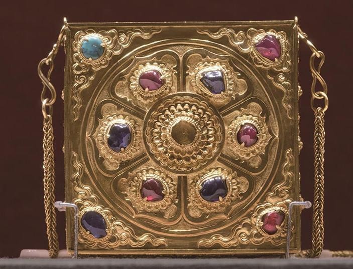 22、明代 嵌宝石金链香盒 南京市博物馆馆藏