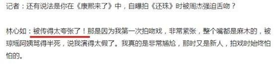 早年参加综艺节目林心如多次提到周杰舌吻她很恶心,但是如果是个日本人就很愿意被亲。还自爆曾与帅气男模接吻,因为是日本人,所以完全乐在其中。
