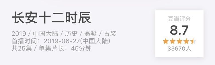 万众期待的《长安十二时辰》在这几天可以说是刷屏了,这部剧以其精良的制作水准,一举在豆瓣轰下了8.7的高分。