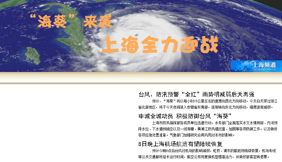 隔月他前往上海,上海又迎来了五十年来最大的台风“海葵”。