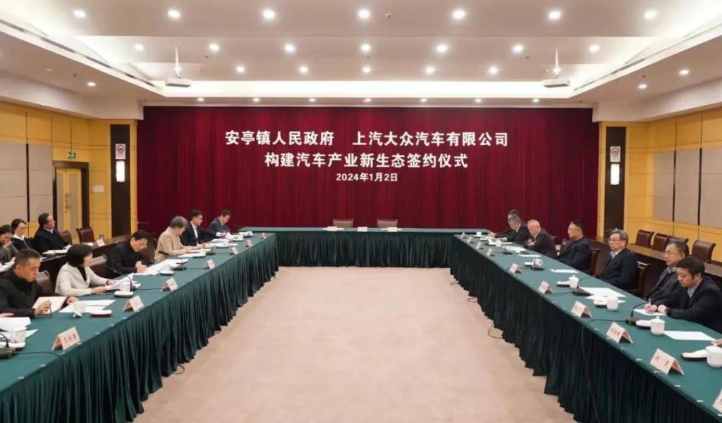今天(1 月 2 日)是新年首个工作日,记者从下午举行的安亭镇人民政府与上汽大众汽车有限公司构建汽车产业新生态签约仪式上获悉,嘉定区和上汽集团将携手奋进,以资源的重组、空间的转型促进产业新生态的集聚,着力推动汽车产业实现 " 整体能级、载体布局、协同创新、示范应用 " 四个跨越,全力构筑最前沿、最完整的新汽车产业集群生态圈。