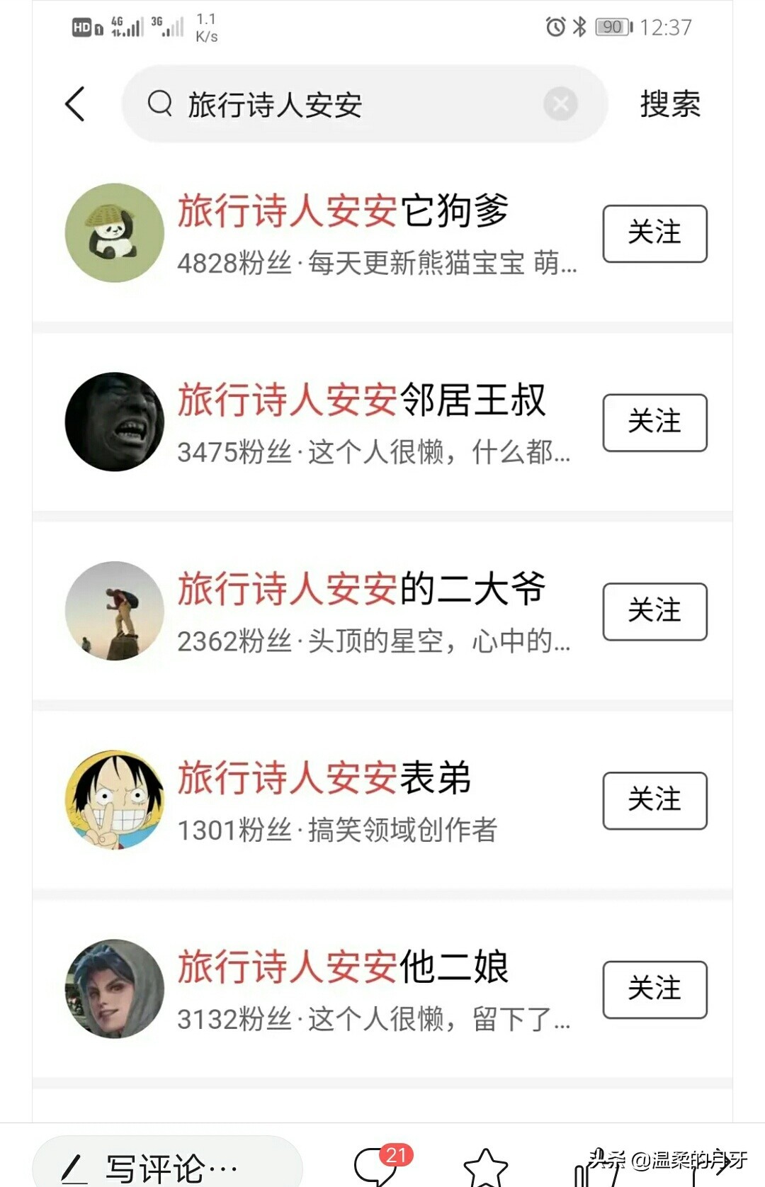 他这样出名也是醉了。嗯,挡不住网友的一片恶搞了,真是脑洞大开,有人就仿照他的模式评论,展开了接力比赛,安安家族日益强大,譬如:旅行诗人安安的姐姐、旅行诗人安安的舅舅、旅行诗人安安的二大爷……哎呀,五花八门,让人笑掉牙。