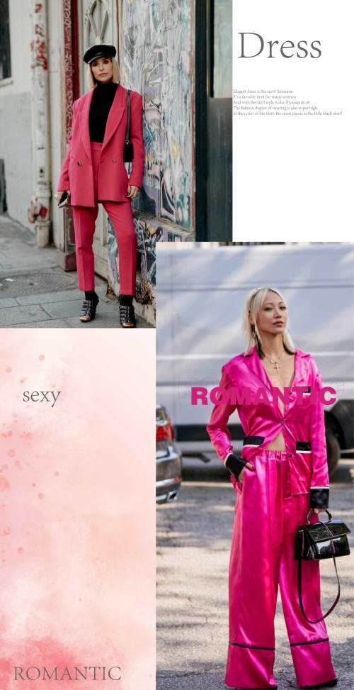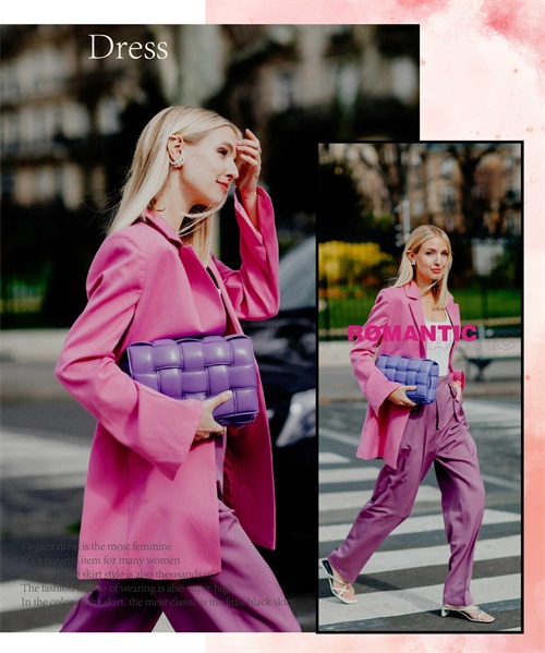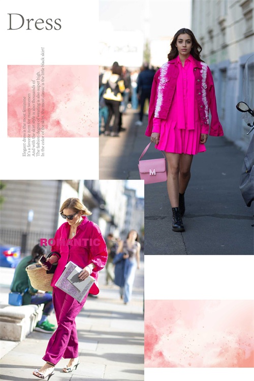 玫红色的单品与淡色系的单品相互的组合起来,显现出层次上面的不同视觉感受,或是深浅或是明暗的色系晕染,都将不一样的潮流韵味体现。