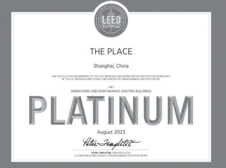 (虹桥南丰城LEED & WELL铂金级认证证书)