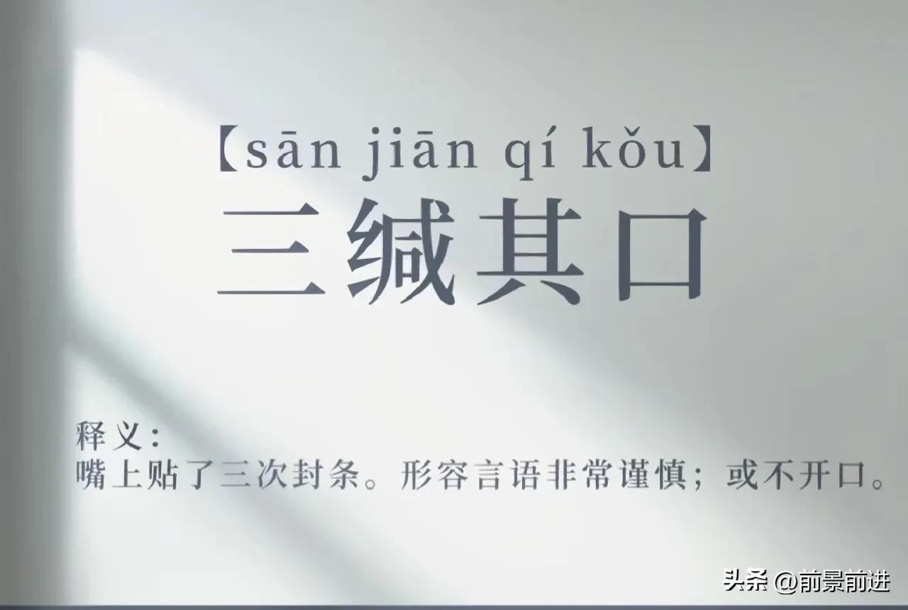 缄:封闭。用三张封条贴在嘴上。形容其言谈说话相当谨慎,或者一句话也不肯说。现在也用来形容不肯或不敢开口。