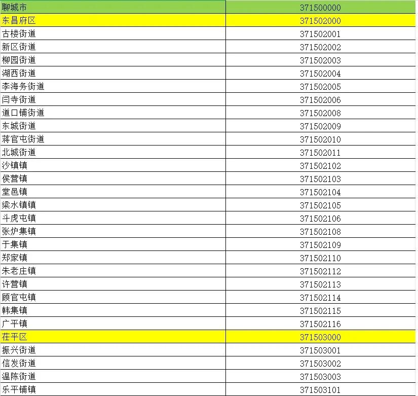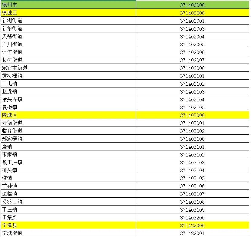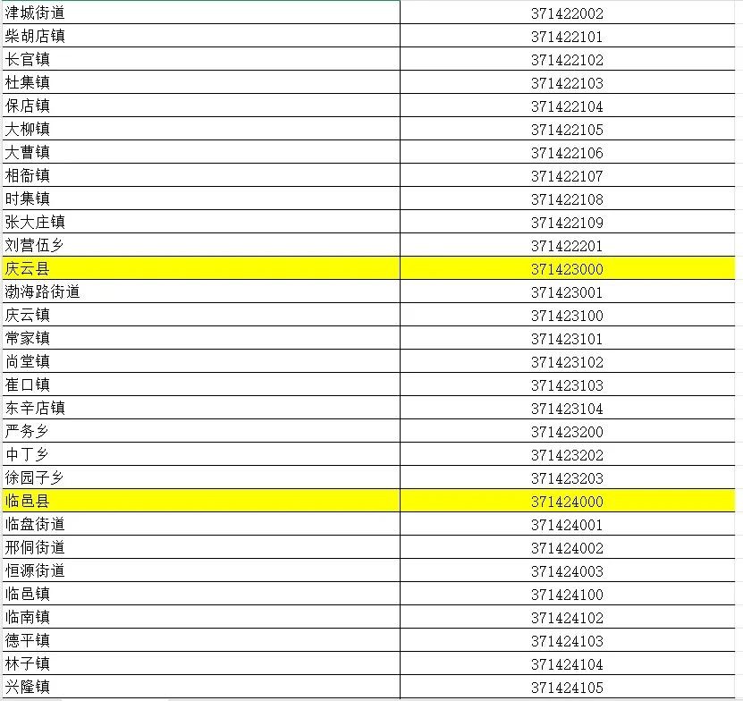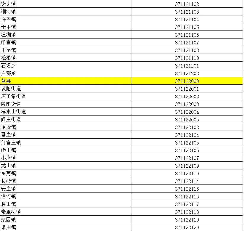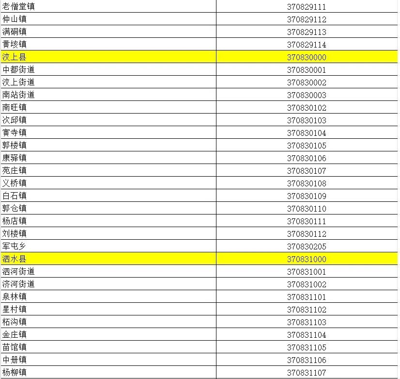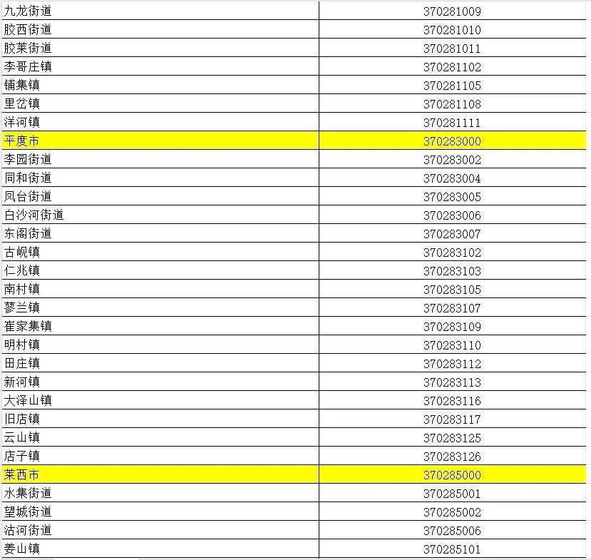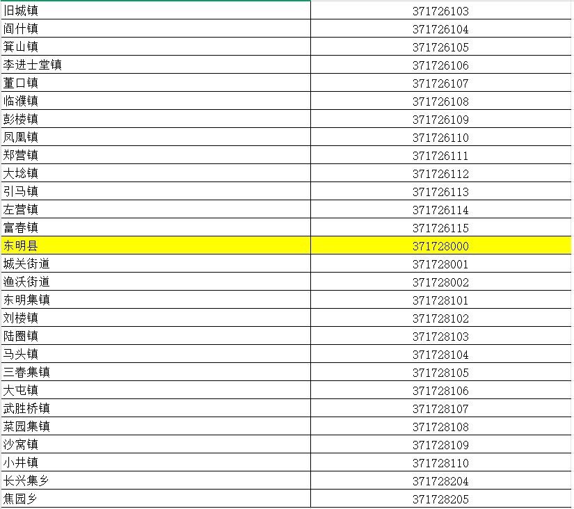 山东省行政区划信息统计表