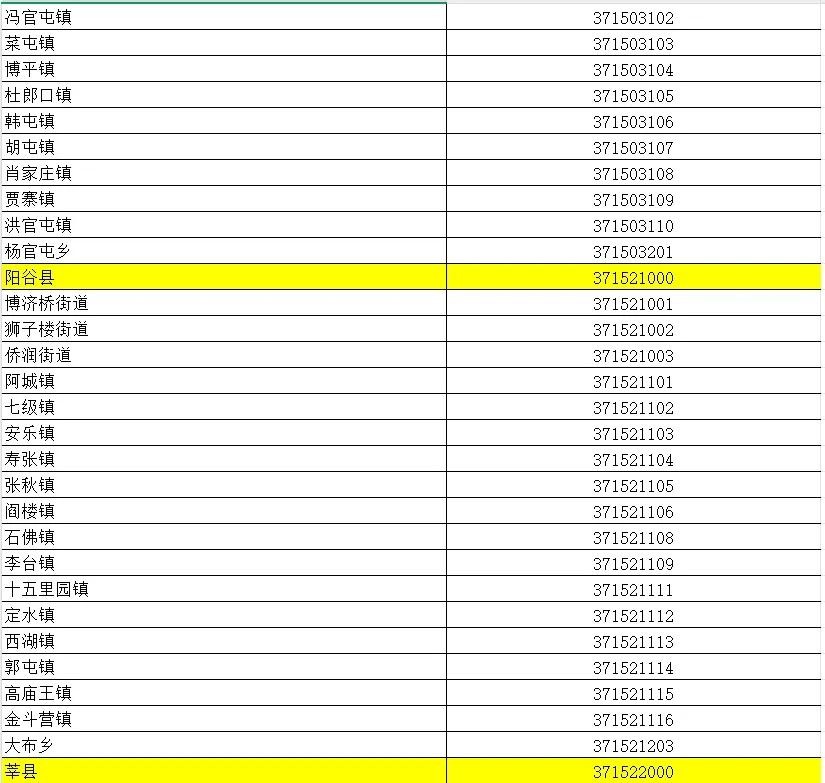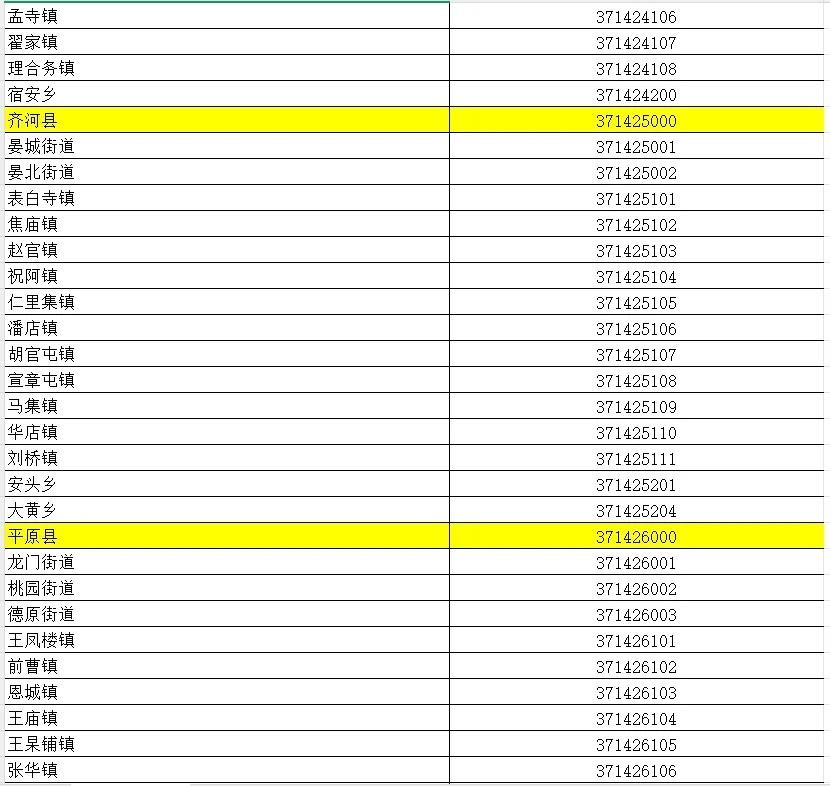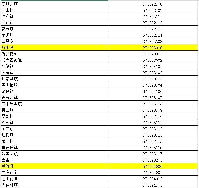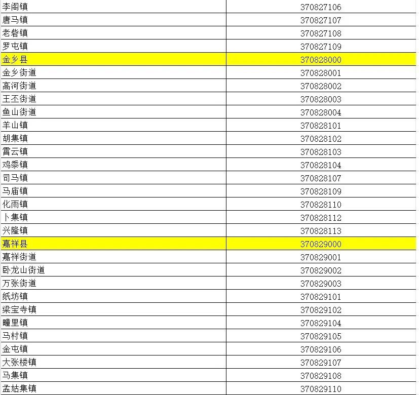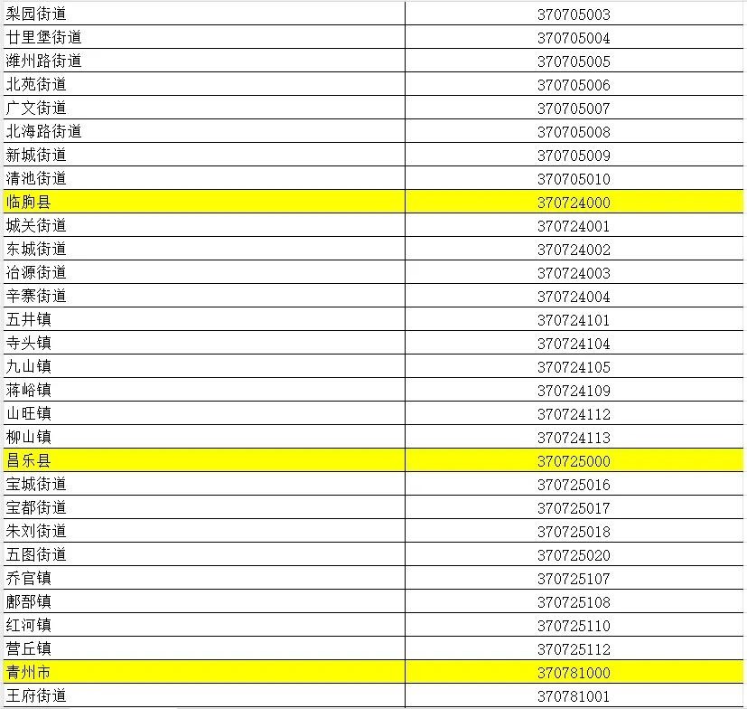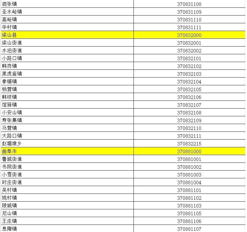 山东省行政区划信息统计表