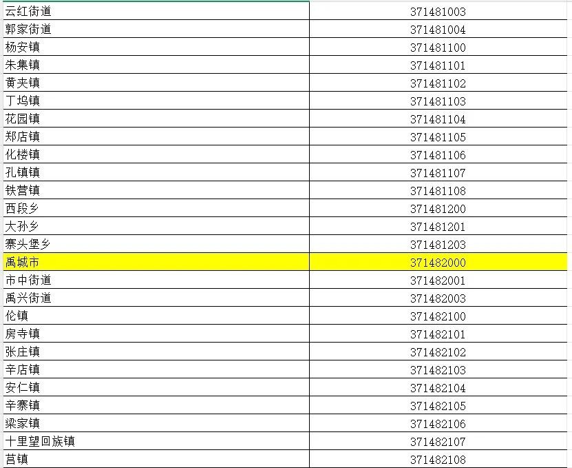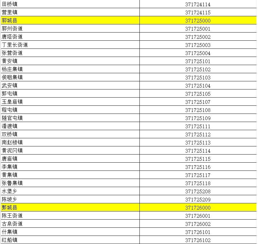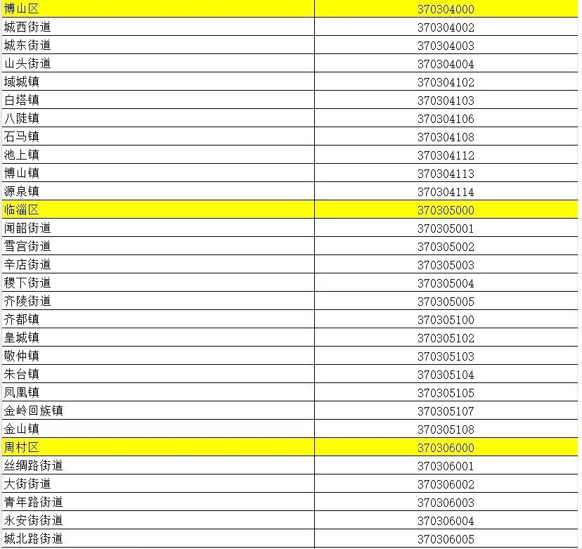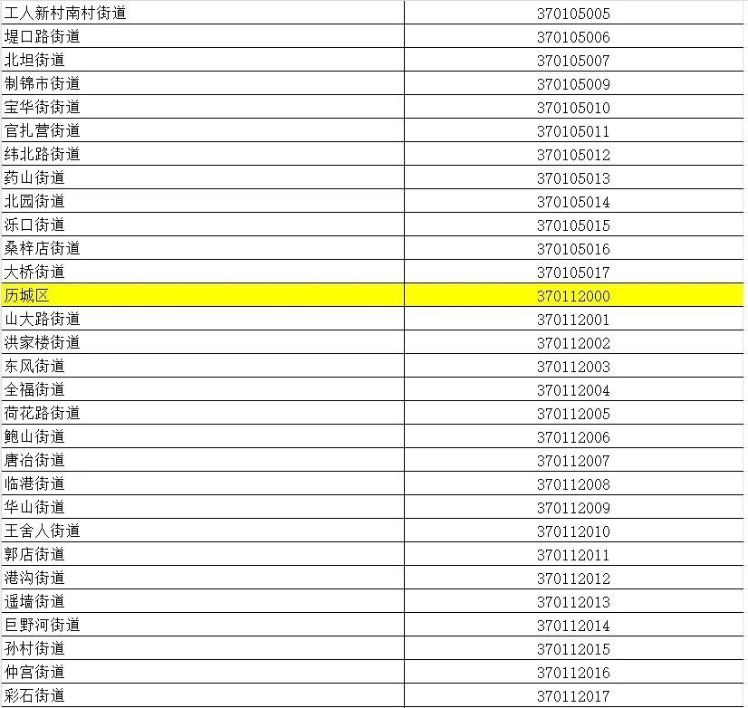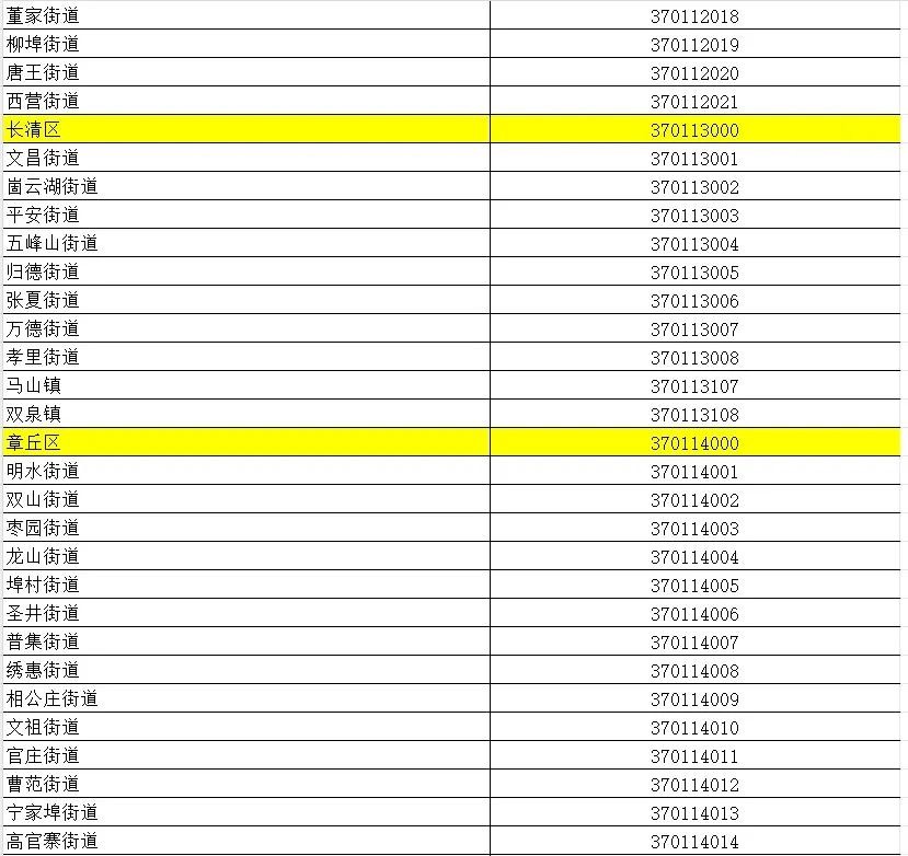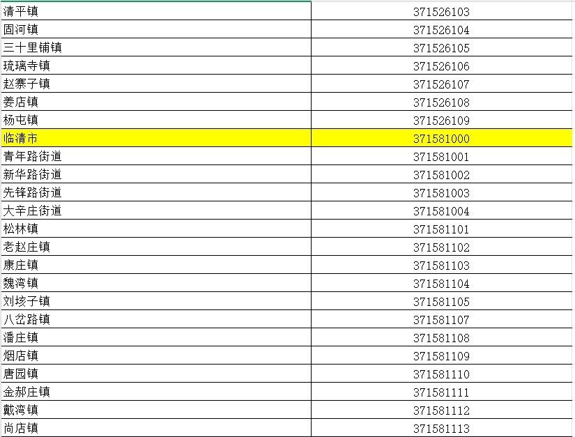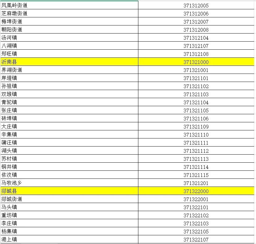 山东省行政区划信息统计表