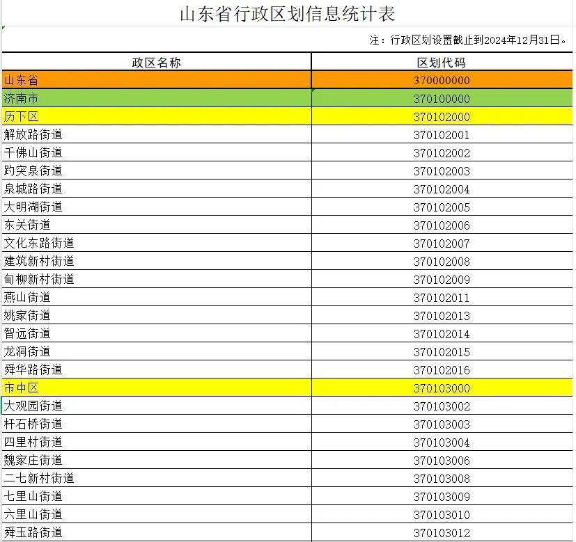 2024年度山东省行政区划信息