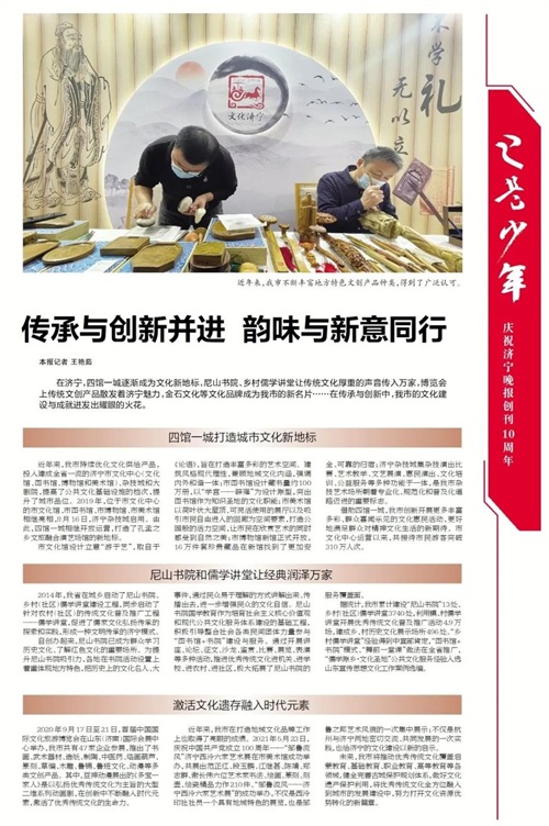 随着全媒体不断发展,传统报业也在积极拥抱新技术、构建新平台,探索融媒时代的纸媒转型之路。从微博到微信,从短视频到自制栏目,济宁晚报深学细研,创新创优,在省、市新闻类、设计类、融媒类等方面均获得不同奖项。2019年7月,以刊登于济宁晚报专栏“三国谈”稿件为脚本的同名视频栏目《甏视频·三国谈》上线,作为全省同级媒体唯一一档史论类栏目,当年即获得2019年度“济宁市好新闻奖”一等奖,2020年荣获我市社会科学普及优秀作品(视频类)奖。今年3月,为在广大读者群体中倡树良好的阅读风尚,济宁晚报推出另一档融媒类栏目——《甏视频·荐书堂》。未来,我们尽所能研发更多融媒新产品,弘扬主旋律,传播好声音。