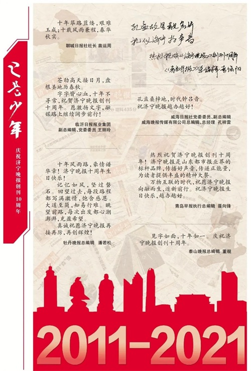 这十年,不仅是济宁晚报的十年,更是许多读者成长的十年,是见证济宁荣华变迁的十年。从读纸到读屏,从纸媒到融媒,时代在变,我们也在变。