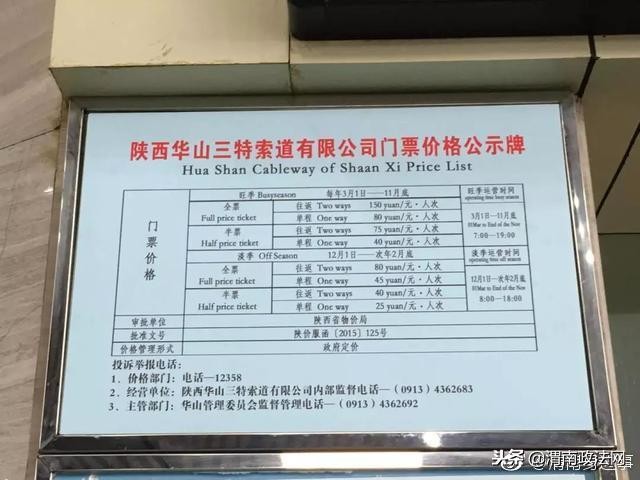 华山西峰索道单程票价从140元降至120元(温馨提示:华山西峰索道目前正在检修停运中);北峰索道单程票价从80元降至45元。