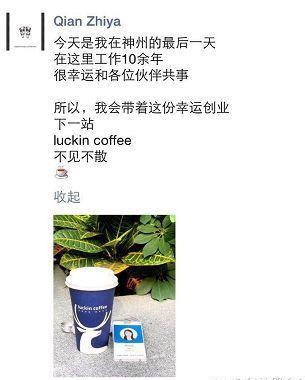 直到2017年,41岁的钱治亚正式从神州辞职创业,创立了瑞幸咖啡。对于钱治亚的创业,老板陆正耀是很支持的,他在当时还写下了一封欢送信: