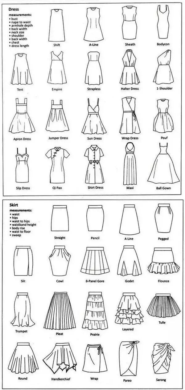 另外就是比较基本款的短裙Straight,Pencil,Aline适合一般上班穿着,可根据臀部宽窄选择。