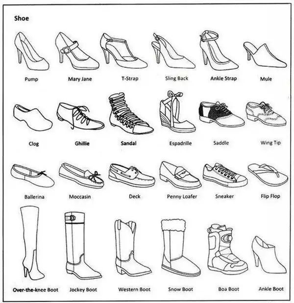 下面的鞋子种类都是一些基本款。女士最基本的是Pump,各年龄段女士都可以穿着,Mary Jane比较适合年龄大一些稍微保守一些的女士。