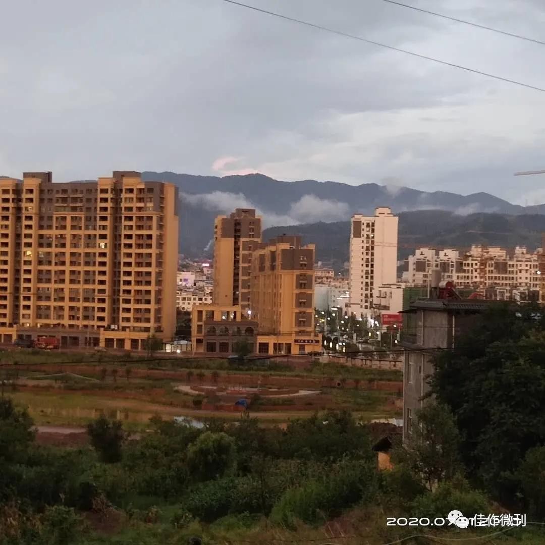 2020年7月31日下午20时许,雨后黄昏,县城犹如镀金,醉美奇观,实属罕见。
