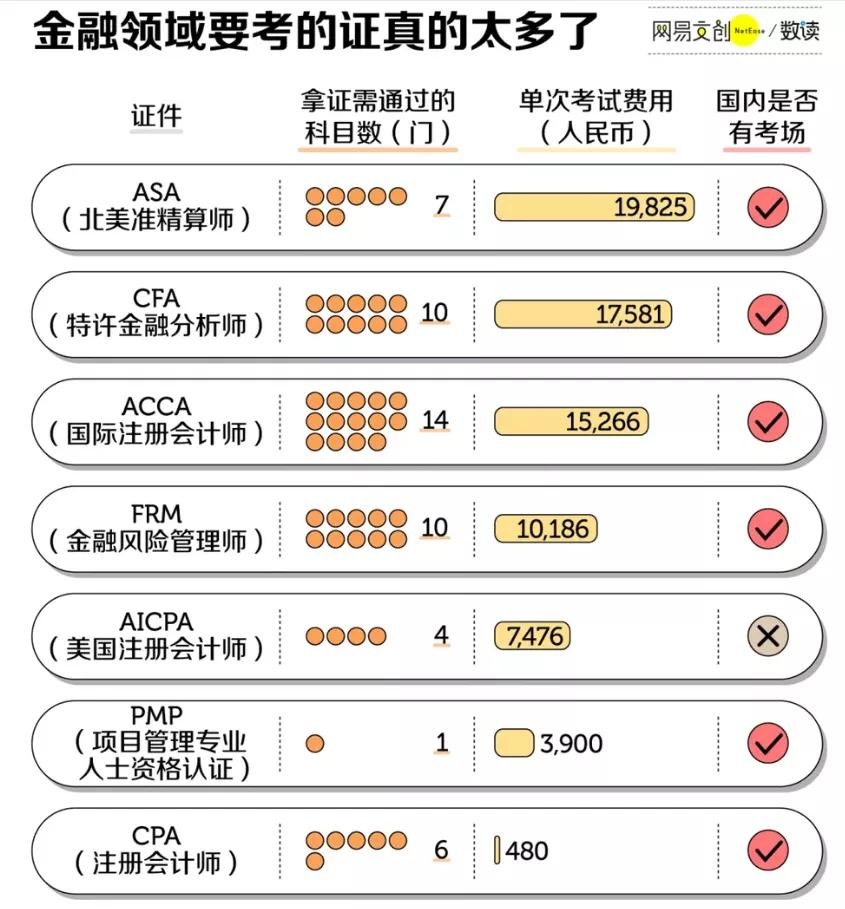 很多金融公司挑人,先看学历,随后就是看实习经历。除了名校文凭、实习经历,很多学霸为了在求职中脱颖而出,还点亮了很多的技能,常见的就是考各种证。我们来看一看金融行业要考的证: