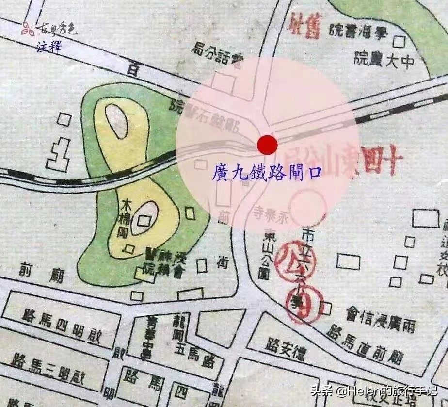 其实关于“东山口"这个词,在清朝和民国的地图上并没有这种说法,只是随着广九铁路的出现,其中一条通往东山的路上多了一个闸口,人们经常需要在栏杆前等待,那一带就俗称”东山口“。