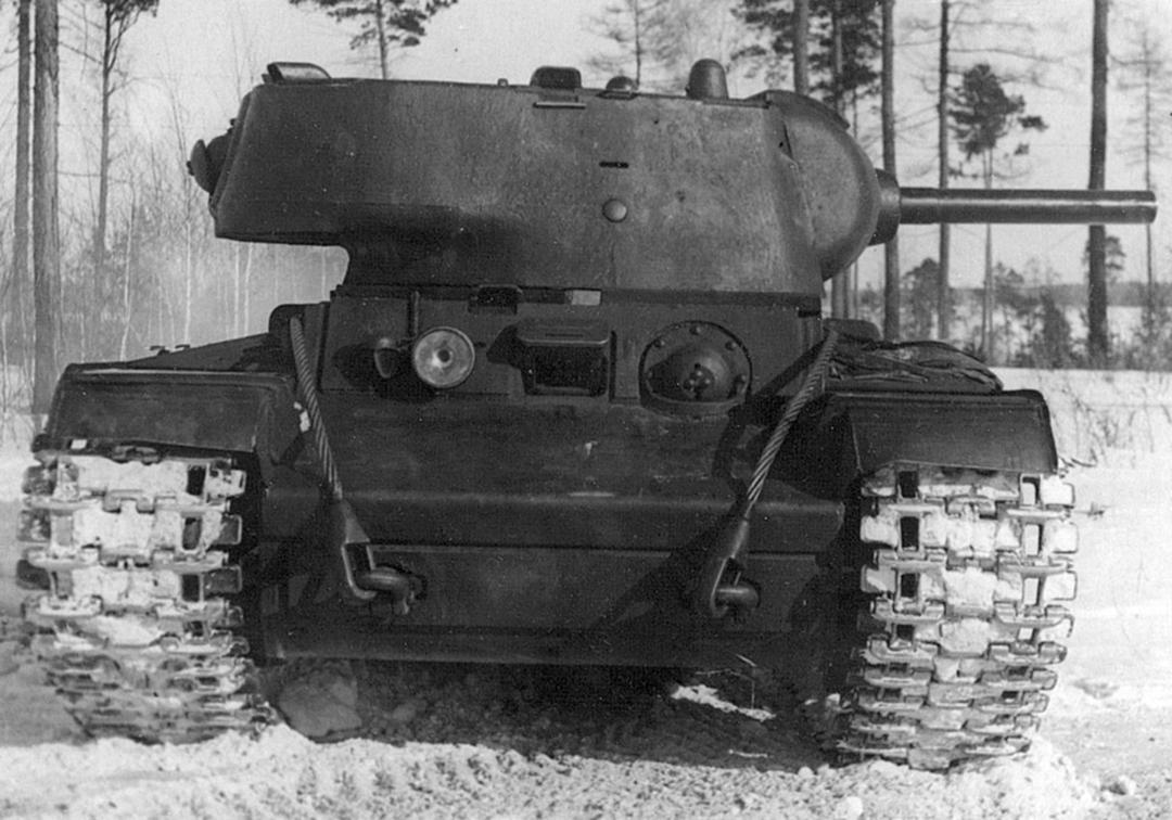 不过KV-1试验车依然属于设计相对比较奇葩的那种类型,它的炮塔上装备了两门炮,一门76.2毫米主炮和一门45毫米副炮,在实战中这种设计显得非常鸡肋。因此科廷将45毫米副炮更改为一挺机枪,同时因为苏芬战争中不乏步兵从坦克后方盲区使用集束手榴弹或者燃烧瓶瘫痪坦克的案例,因此坦克炮塔的后方再一次加装了一挺机枪,以备不时之需。