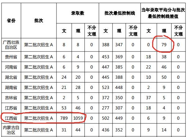 大部分省市为第二批次招生 A,在录取平均分数控制上,文科超出当地省(市、自治区)录取分数线的有23个,理科超出当地录取分数线的有25个。