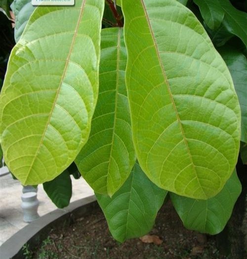 二是单叶互生,叶片薄革质,长圆形或椭圆形,长8-25公分,先端钝,基部浑圆或钝,两面无毛,叶边全缘,叶柄长3公分左右。