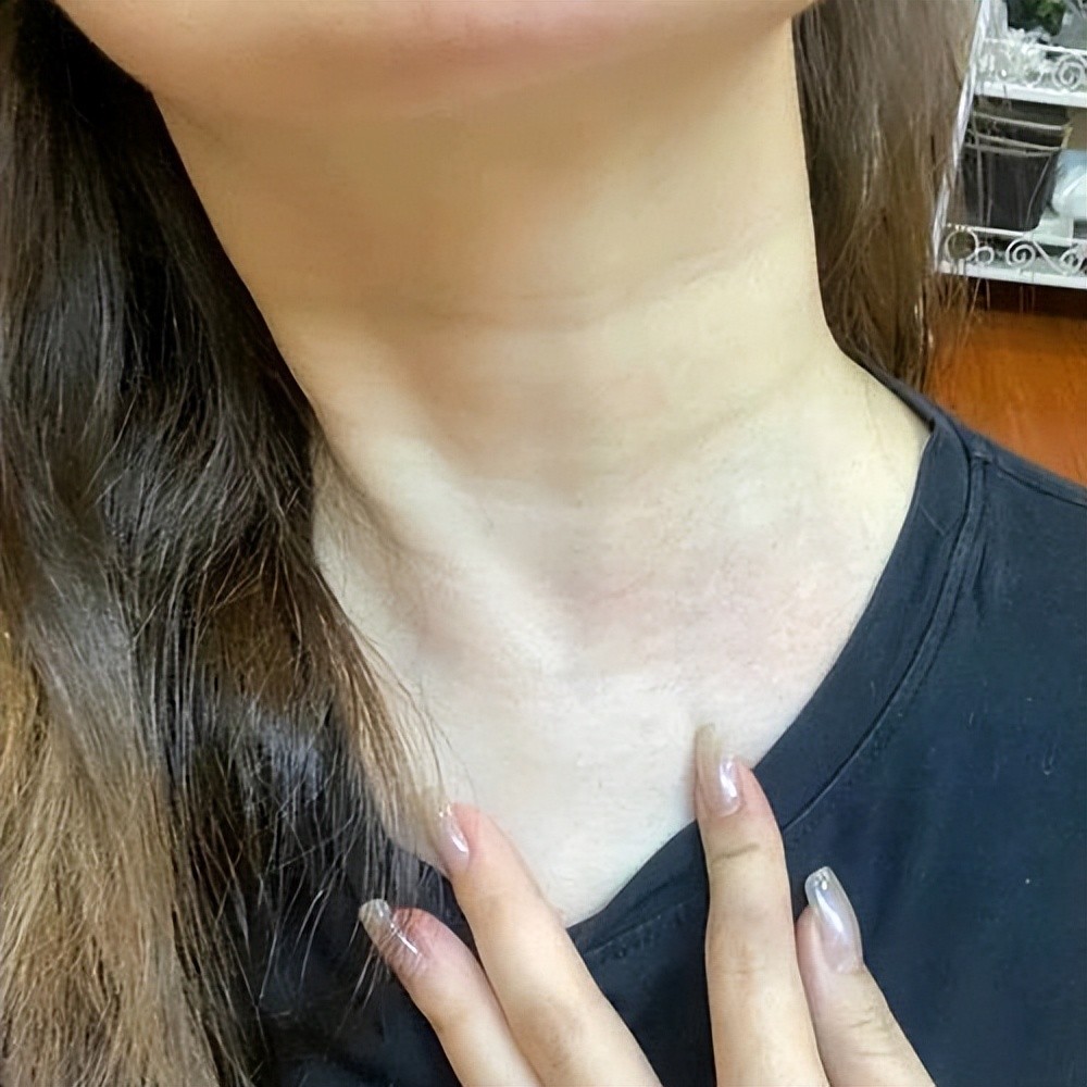 总之,不管是哪种原因导致的颈纹,都已经成为既定事实了。天冷穿厚衣服看不出来,但是到了热天呢,漏脖子的衣服肯定要穿起来的,整个颈部暴露无遗,这么精致的一张脸蛋,搭配颈纹的脖子,违和感也太大了。