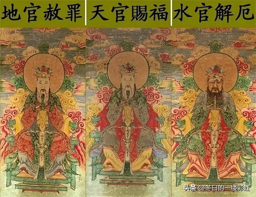 实际上,在道教里也有“三元说”:农历正月十五上元节(元宵节)、七月十五是中元节(地官节、盂兰盆节)、十月十五是下元节(水官节)。道教有三官:天官、地官、水官;三官的诞生日分别为农历的正月十五、七月十五、十月十五;他们三官分别掌管着这三个重要的日子。其中:天官赐福+地官赦罪+水官解厄。三官大帝掌握了天堂、地府、海洋间的一切事项,是极为崇高的神祇地位,之高其神格仅次于玉帝,所以民间寺庙常与配祀于玉皇上帝之前。