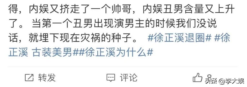 平心而论,相比退圈结婚,因与公司的纠纷不得已退圈,这个原因的可能性更高。但是在本人没有发声之前,徐正溪真正退圈原因还有待考证,可能很复杂,但也有可能只是个人选择,他想尝试下另一种生活呢?你们对此徐正溪突然退圈一事怎么看?