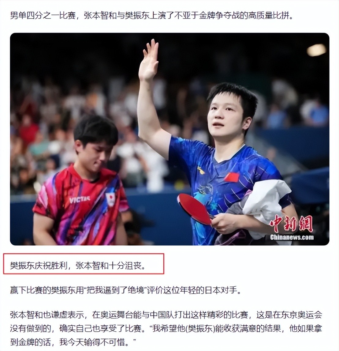 中国新闻网:《张本智和泪别巴黎:努力“兼三” 四次“心碎”》2024-08-09
