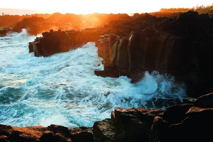 在留尼汪岛南部的圣菲利普,横亘着一处黑色峭壁,峥嵘险峻,洁白的浪花拍打在这片黑色玄武岩峭壁上,被击碎成千万颗晶莹的水花。