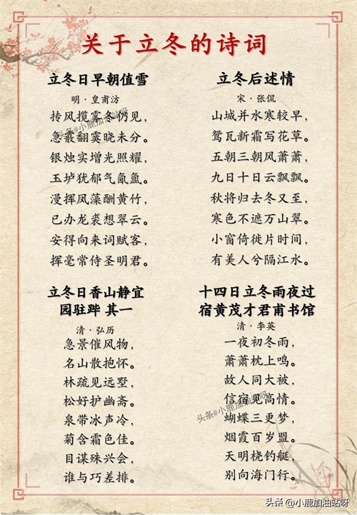 80首关于立冬的古诗词汇总:一年好景君须记,最是橙黄橘绿时