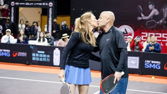 网球大满贯阿加西、格拉芙夫妇上海再现混双风采,深情一吻唤青春