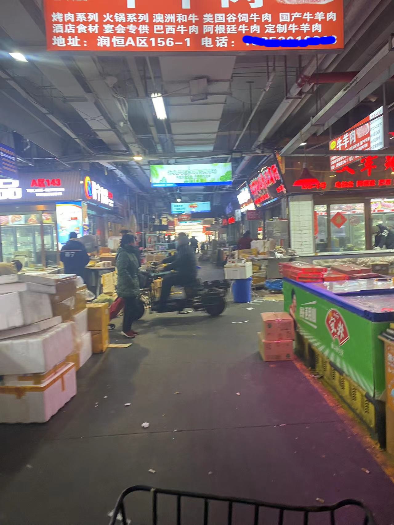 鲜肉交易区,设在润恒市场内,进门即可看到,商户每天凌晨2.3点就开始分货,分割,整理肉品,常见种类猪牛羊,鸡鸭鹅,等等