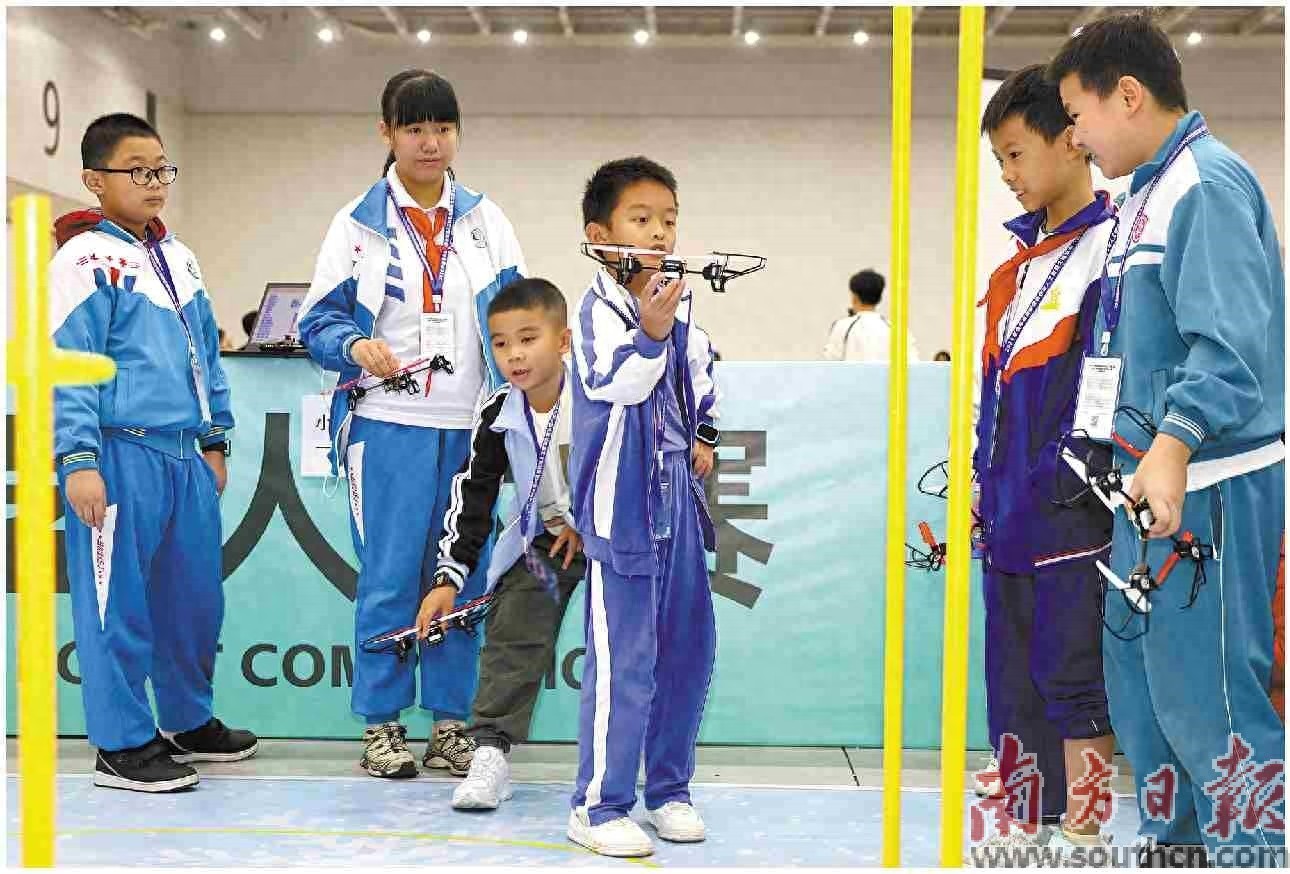 横琴粤澳深度合作区人工智能大赛暨第六届粤港澳青少年机器人大赛举办,选手们比拼无人机操作技巧。关铭荣 摄