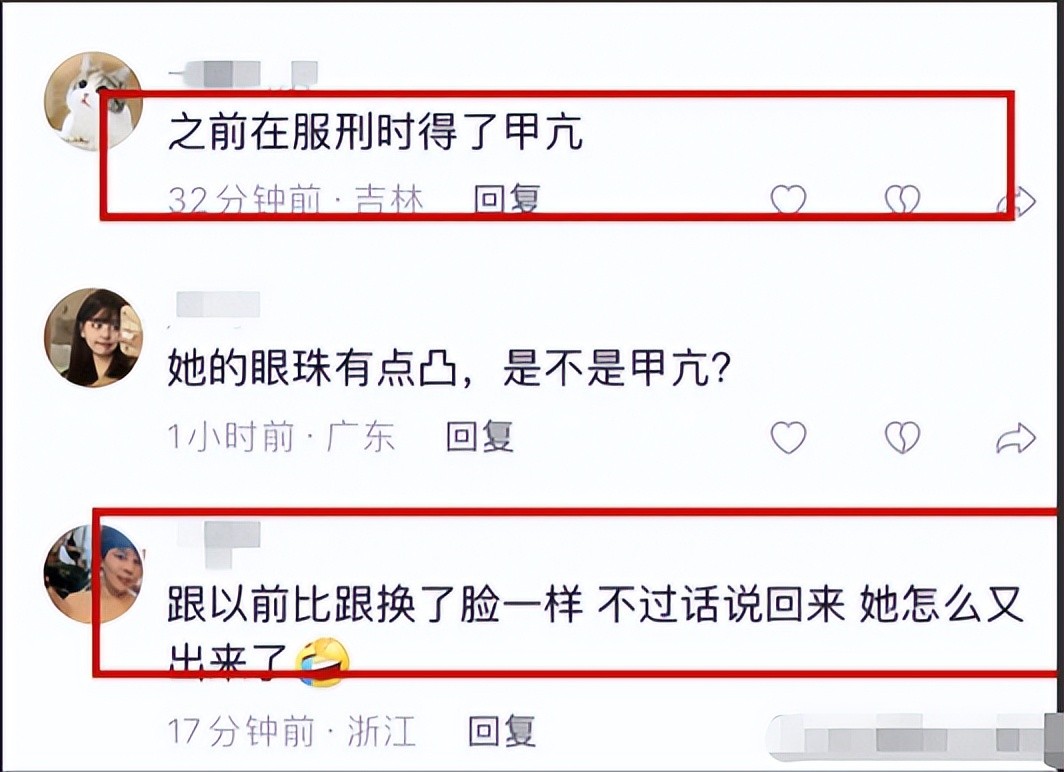 但是整个人看起来,眼珠子特别明显,可能是之前得了甲亢的原因,因为她曾经在入狱的前一年,录视频表示自己患有甲亢,所以影响整体的美观。