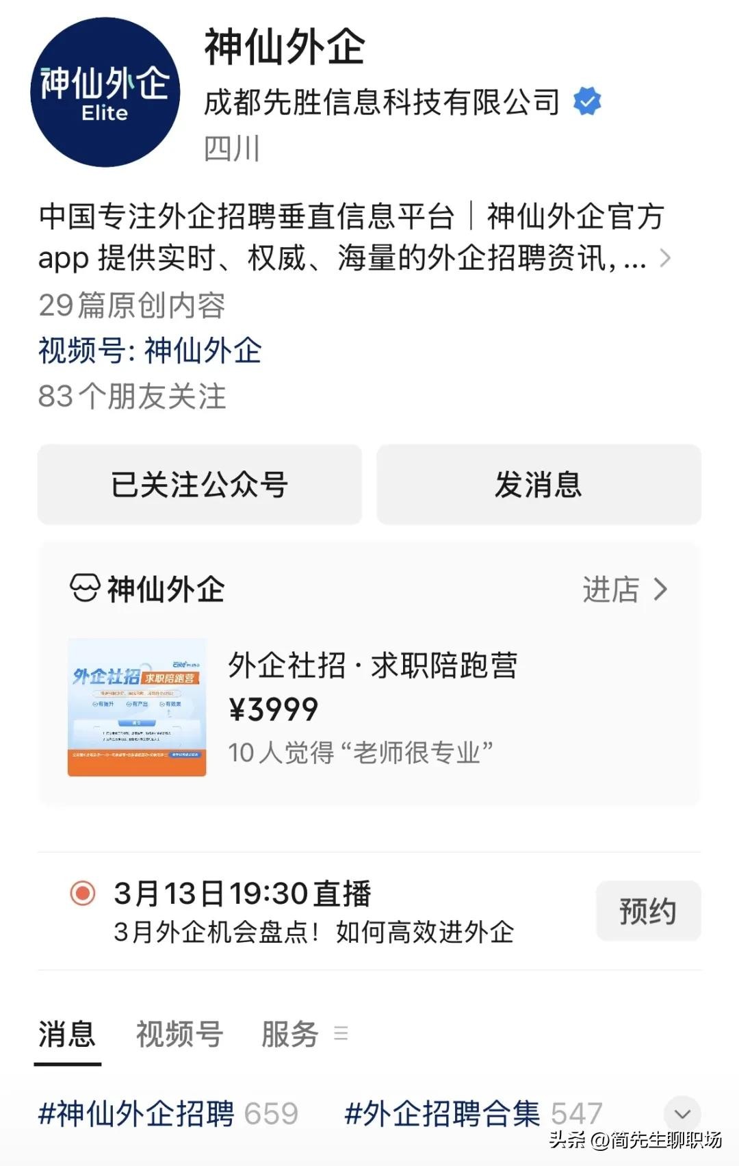 神仙外企公众号:专门分享外企岗位,适合想进外企的朋友。