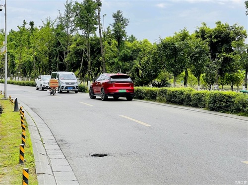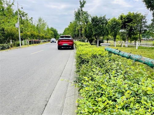 跟着导航一路向前,这种绿荫小道下开车凉快不少呢
